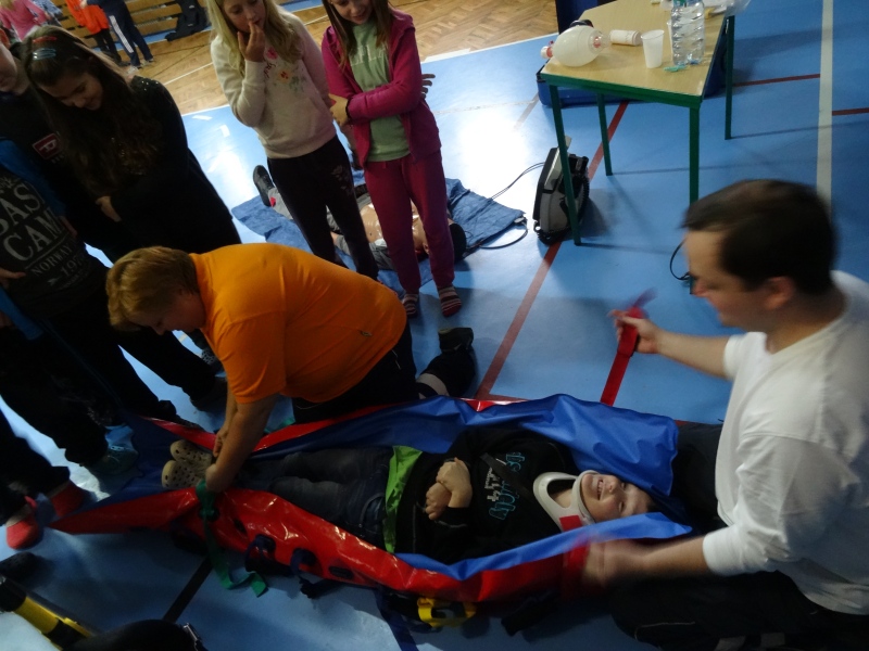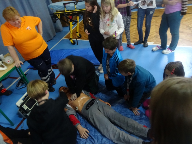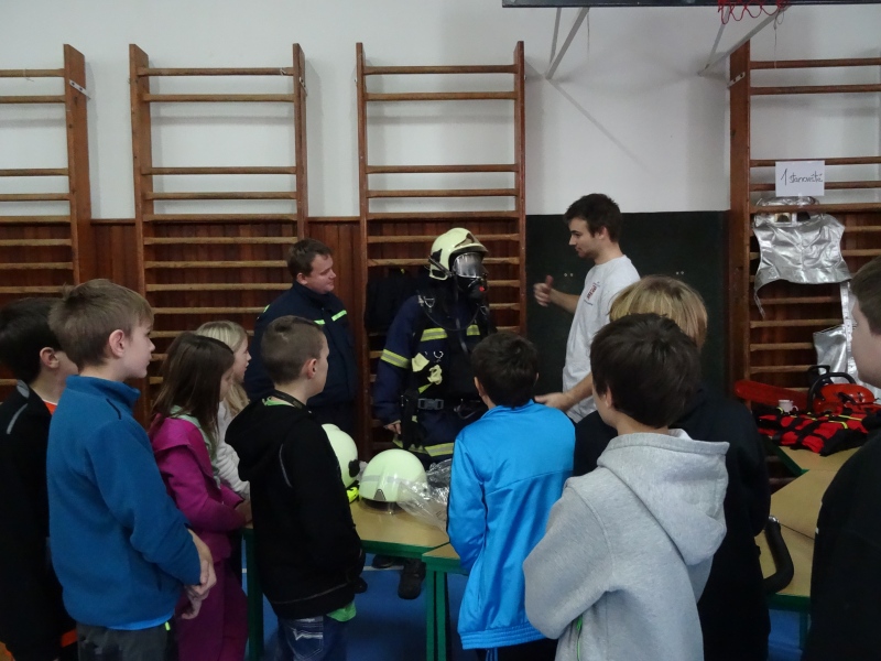 V tělocvičně byla dále umístěna stanoviště Hasičského záchranného sboru, záchranné služby a obecní policie, kde se děti podrobně seznámily s prací těchto složek.