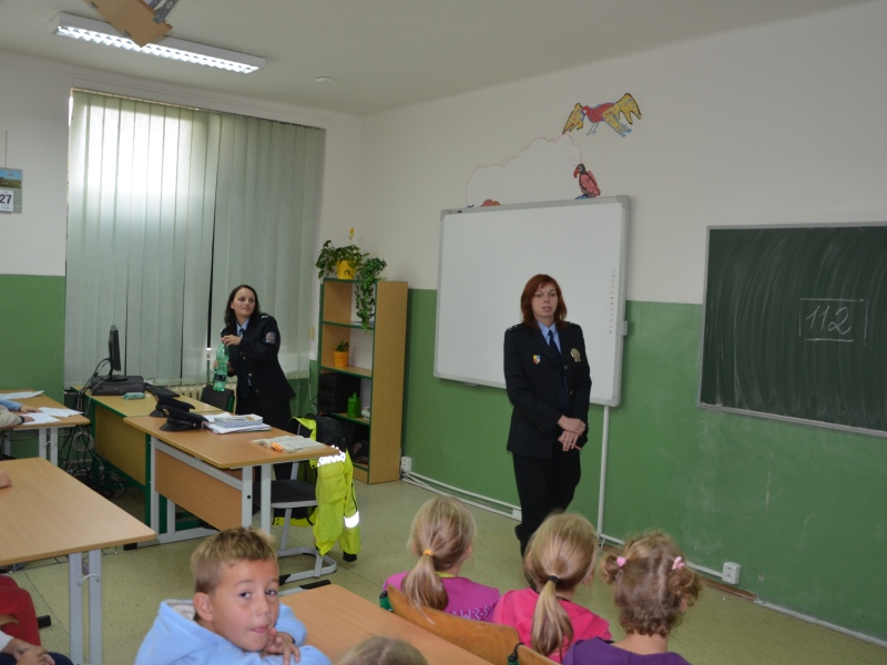 V jídelně základní školy probíhala společná přednáška inspektorky dopravní policie ČR a příslušníka líbeznické obecní policie o správném chování v silničním provozu. Součástí bylo poznávání dopravních značek i ukázka správného vybavení jízdního kola. Také tady se hovořilo o modelových krizových situacích a jejich řešení.