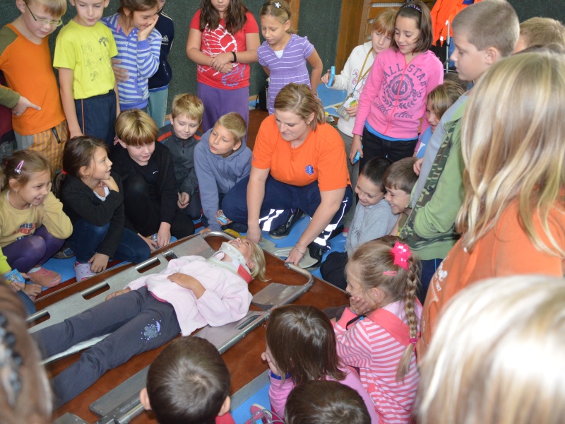 V tělocvičně předváděly své vybavení členové Hasičského záchranného sboru Neratovice a také dobrovolní hasiči z Líbeznic. Děti si tak mohly vyzkoušet protipožární hasičské obleky či helmy. Debatovali s hasiči o tom, jak se chovat v nejrůznějších krizových situací v oblasti požární ochrany. Druhá část tělocvičny patřila posádce Záchranné služby Středočeského kraje z Mělníka. Žáci se tu dozvídaly o zásadách poskytování první pomoci a samy zkoušeli například oživovací zákrok na figurině.