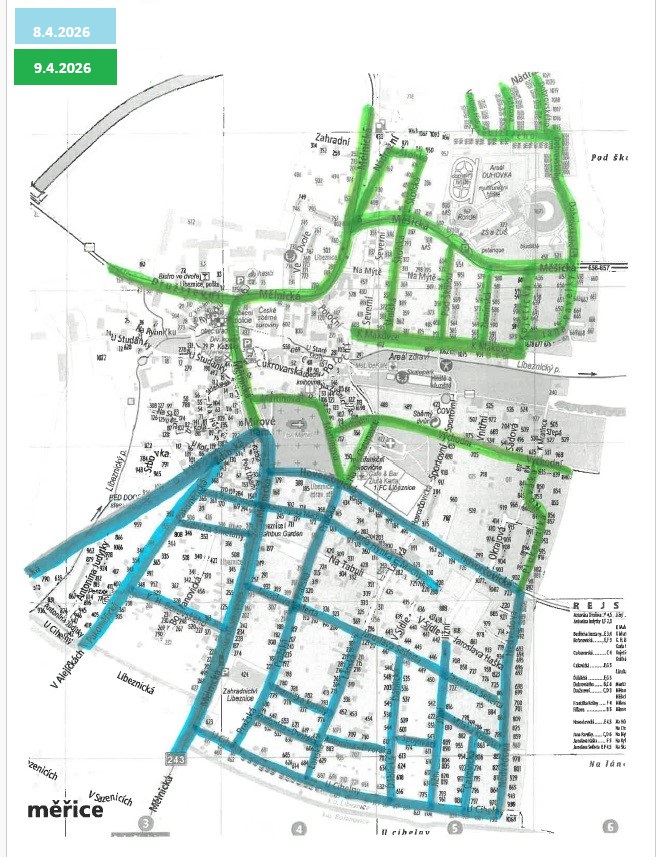 Chtěli bychom vás informovat, že společnost IPODEC bude 8. a 9. dubna provádět čištění komunikací vyznačených na přiloženém plánku. Žádáme všechny občany, aby z uvedených komunikací odstranili zaparkovaná auta.