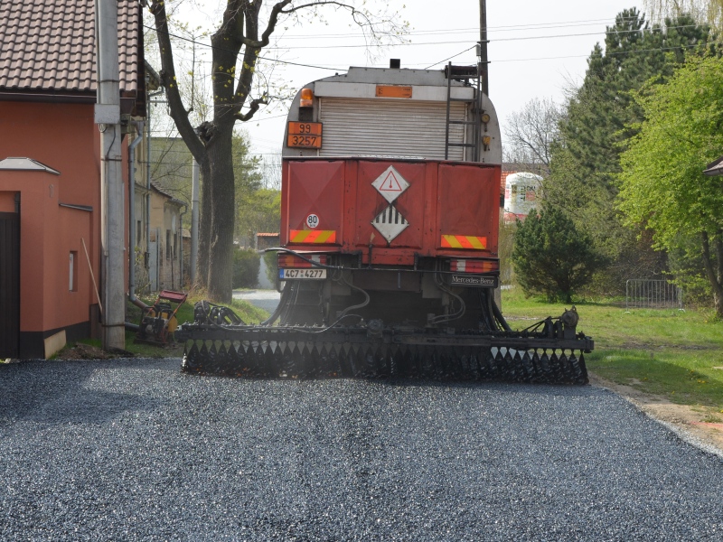Jednoduše řečeno: Tam, kde komunikace téměř zpevněné nebyly, obec zajistila pokládku a zhutnění živičného recyklátu (ulice U Kola, část ulice Na Skalce, Školská, Severní, Hovorčovická-Sportovní). „Recyklát jsme získali díky úpravě komunikací v okolí za velmi rozumné peníze. Pokusili jsme se využít příležitost, která se douho nemusí opakova,“ říká 1. místostarosta obce František Závorka. Zhutněný recyklát může podle názoru odborníků problém prašných a rozbitých na jistou dobu vyřešit.