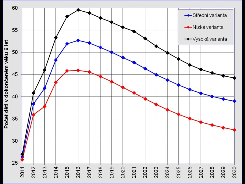 Obrázek 3: Očekávaný vývoj počtu dětí v dokončeném věku 6 let