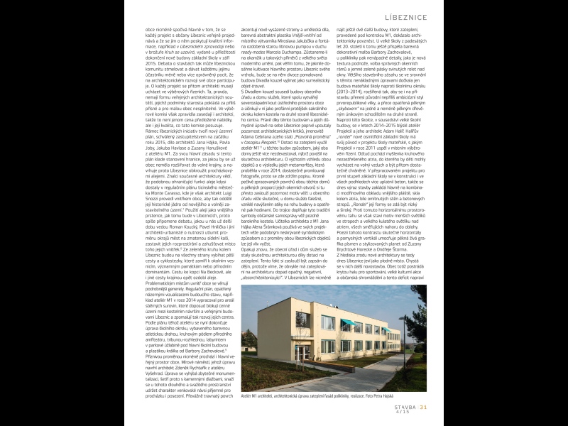 Rok 2015 přinesl Líbeznicím několik nových staveb a také řadu ohlasů v médiích. V časopisu Stavba psal například o Líbeznicích profesor Rostislav Švácha.
