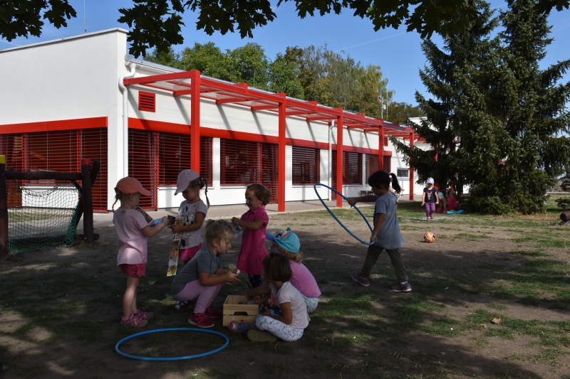 Devět tříletých dětí přišlo v pondělí 10. září 2018 poprvé do mateřské školy. Celková kapacita zařízení se po rekonstrukci zvýšila na 128 dětí. Během uplynulých tří měsíců se podařilo rozšířit nový přízemní pavilon „Bezinka“. Dosavadní prostory po školní družině sloužily jen provizorně pro 16 dětí. Od nového školního roku má školka k dispozici novou plnohodnotnou třídu a k tomu další potřebné novinky.„Chtěli jsme navíc vyřešit dva zásadní problémy montované stavby. V teplejších dnech se celý vnitřní prostor přehříval tak, že se v něm nedalo pohybovat natož uspávat po obědě děti. Kvůli elektrickým přímotopům jsme zase v zimě utráceli zbytečně mnoho za energie,“ popisuje místostarosta Michal Doubrava. Přímotopy nahradilo v celé budově ústřední plynové vytápění. Zároveň dostala školka podél východní stěny nový přístřešek. Ten má chránit v zimě před sněhem padajícím ze střechy a zároveň vytvořit krytý prostor pro pobyt dětí venku i za horšího počasí. Zásadní zlepšení klimatu ve třídách by měly přinést venkovní předokenní žaluzie. Dalším novým opatřením jsou výkonné ventilátory, které by měly přes noc celou budovu ochladit.