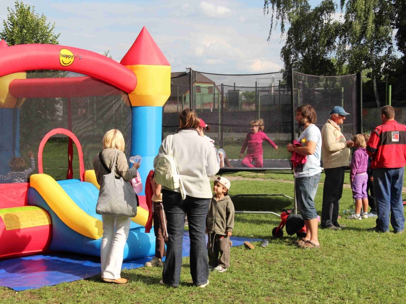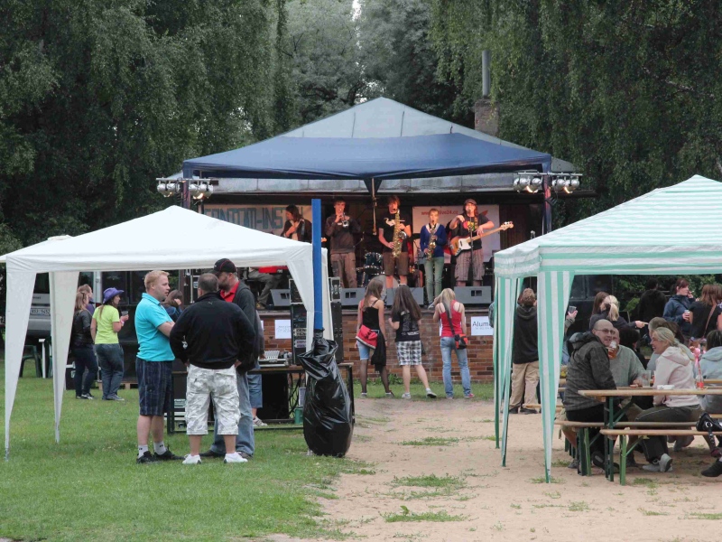 14:00 – otevírají se brány pro návštěvníky, pódium a zvukař jsou na svém místě a čekají na první kapelu, stánky s občerstvením jsou připraveny, stejně jako atrakce pro děti, které spolu s rodiči zatím tvoří valnou část přítomných. Nafukovací hrad i trampolína jsou v obležení a atmosféra alespoň prozatím připomíná spíše dětský den.