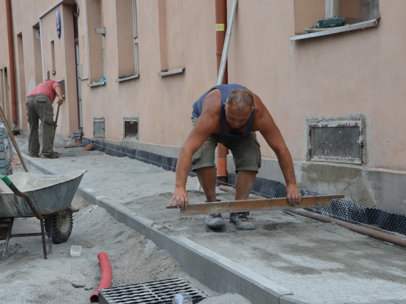 Klienti České pošty, Stavebního úřadu i soukromých firem musely donedávna ke vchodu Domu služeb prodírat v doslova polních podmíkách. Prostranství vedle pošty z velké části zabírala plechová bouda nefungujícího obchodu. Zejména za deště bylo třeba se pro cestu na stavební úřad vybavit pořádnými holínkami. „Plechovou boudu odstranil její majitel po několika jednáních v červnu. Tím se výrazně zvětšil prostor pro parkování klientů pošty,“ vysvětluje první místostarosta obce František Závorka. S výstavbou chodníku kolem budovy začaly technické služby v polovině července. „Museli jsme vyřešit nejprve odvodnění. Letošní stavební zásahy by měly výrazně pomoci i k odvlhčení celé budovy. Pro všechny chodce budou podmínky samozřejmě mnohem příznivější. Konečně bude cesta na poštu i na úřad důstojná a nebude potřeba přeskakovat kaluže,“ shrnuje František Závorka.