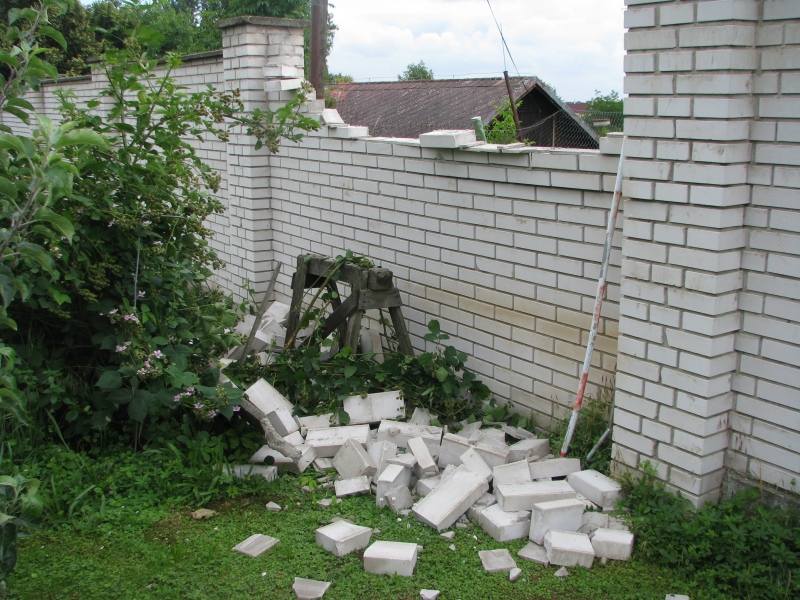 Dne 4.7.2013 přijala v dopoledních hodinách hlídka OP oznámení o tom, že se v prostoru sběrného dvora pohybují dva mladíci a kopou do již poškozené zdi, která se zřítila. Hlídka OP následně zajistila dva mladíky s trvalým bydlištěm v obci Měšice a Odolena Voda, kteří se k činu doznali. K důvodu svého jednání mladíci uvedli, že si na sběrný dvůr zašli pro pneumatiku, se kterou si chtěli házet a při té příležitosti z nudy zbořili již poškozenou zeď. Mladíci způsobenou škodu odpracovali při opravě zdi.
