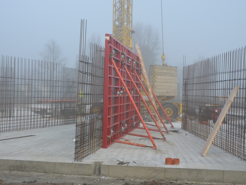 Od pondělí 24. listopadu pokročila stavba Rondelu bedněním zdí. První z nich stavaři vybetonovali ve čtvrtek 27. listopadu. V rychlém sledu stavaři připraví další nosné zdi z pohledového betonu.