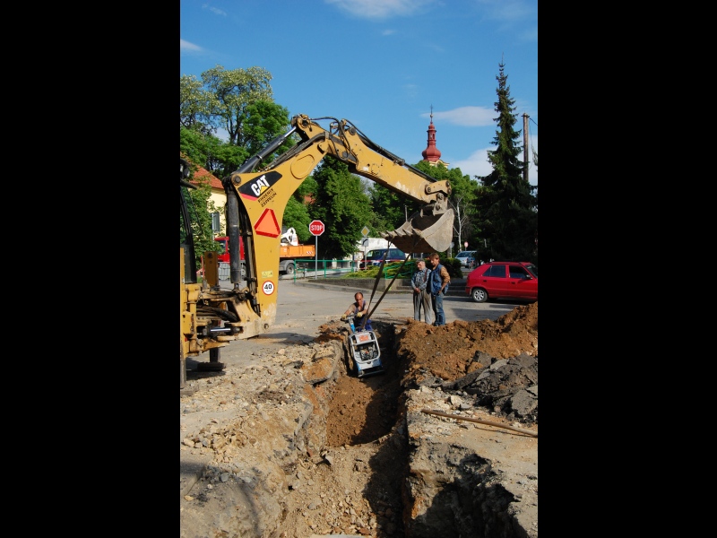 Práce na kanalizaci nabraly v posledních dnech tempo. Staví se zároveň na Mírovém náměstí i Na Hůrce.