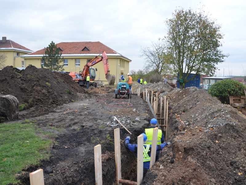 22.10.2014 Stavba Rondelu začala sejmutím ornice a výkopem pro přeložku vodovodního potrubí. Práce začaly 20. října a trvaly dva týdny. Fotogalerie