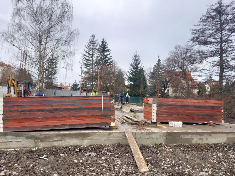 14.3.2023 Na stavbě zázemí v Areálu zdraví právě probíhá armování a vše se připravuje na betonáž sloupů a stěn zázemí, která by měla proběhnout do konce tohoto týdne.