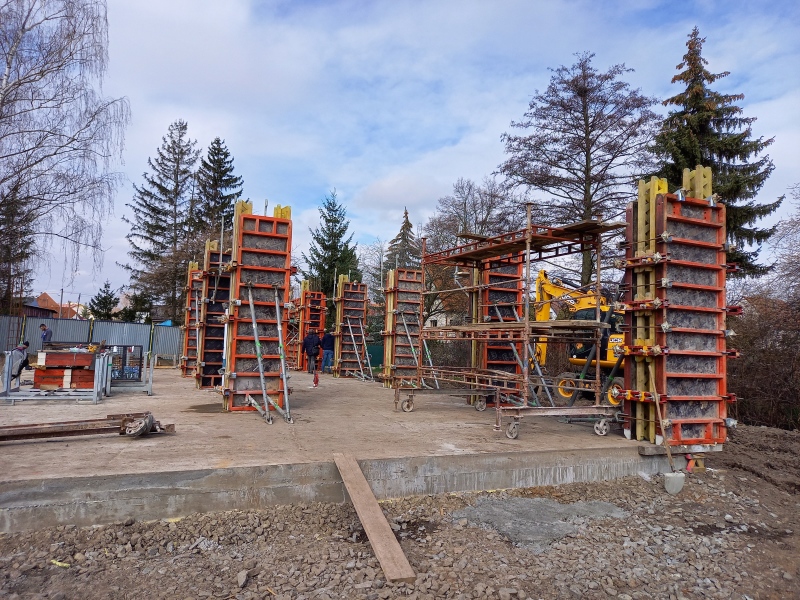 21.3.2023 Výstavba zázemí v Areálu zdraví pokračuje betonáží sloupů a stěn zázemí. Včera proběhlo betonování poloviny uvedených prvků, druhá polovina bude realizována v příštím týdnu.