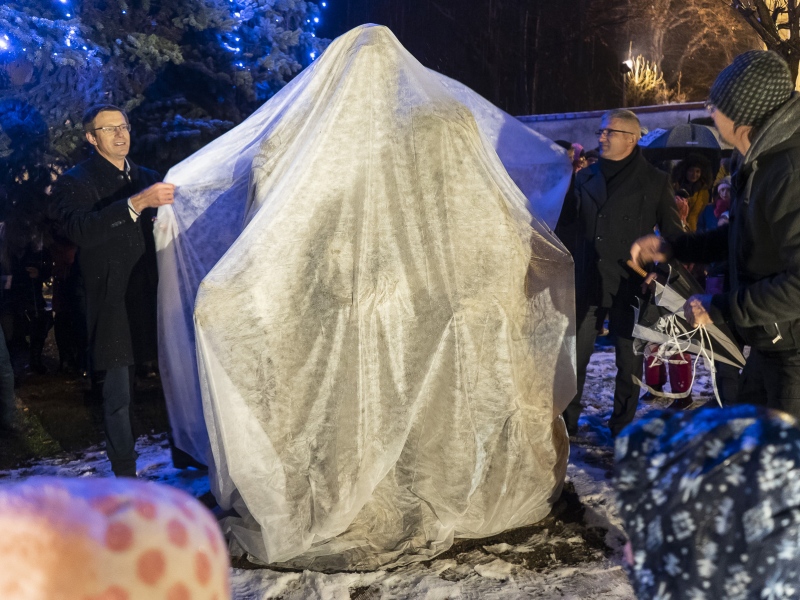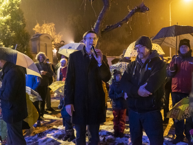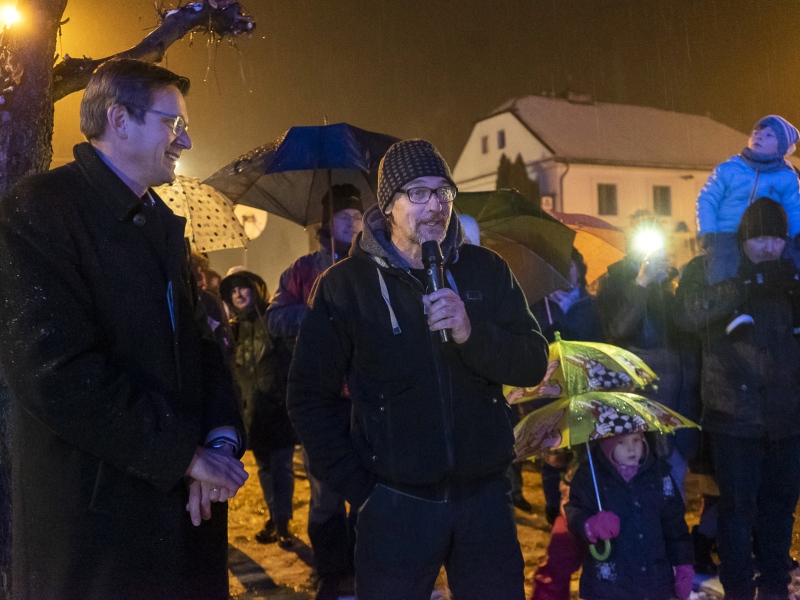 Pak následovalo rozsvícení stromu a především velká adventní premiéra – odhalení nového betléma, který pro Líbeznice vytvořil místní výtvarník Miro Jakubčík. Sám své nové dílo před samotným odhalením komentoval: „Nechtěl jsem dělat obvyklý betlém s jesličkami a zvířátky. Je to prostá věc zaměřená na samotnou podstatu vánočního příběhu. Vedení obce se na mně s tímto zadáním obrátilo už před několika lety. Jsem moc rád, že se to podařilo letos dotáhnout do konce.“