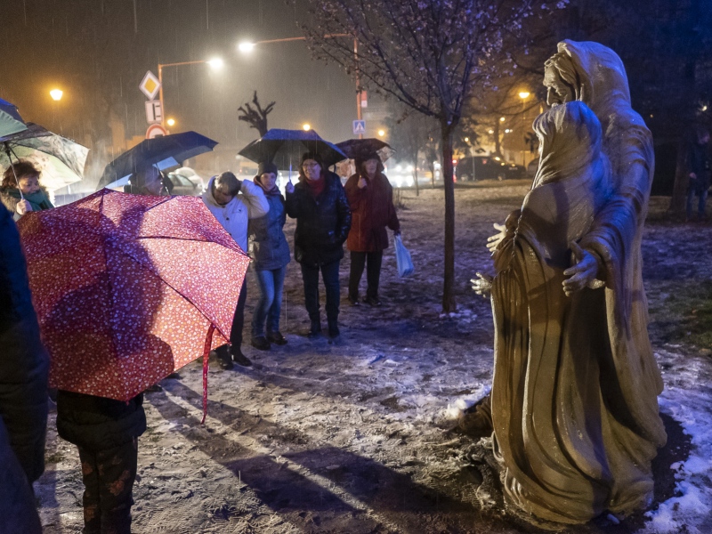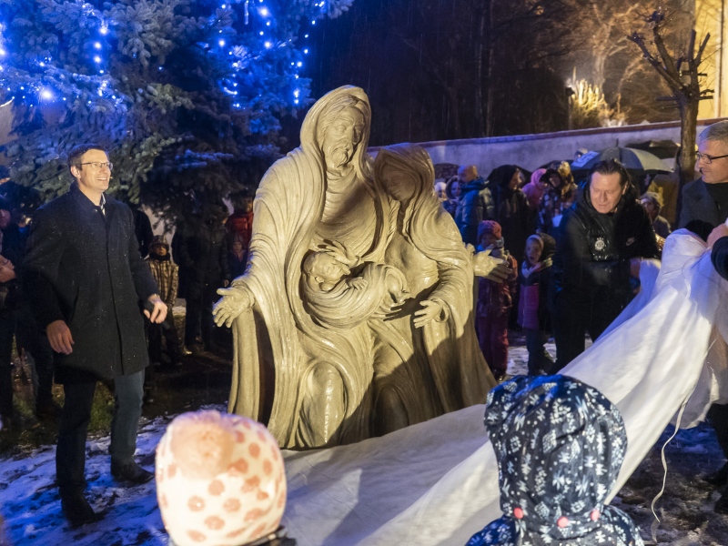 NA sítích se objevila také otázka z čeho je vlastně betlém vytvořený. „Je to tak trochu můj vynález. Můžeme tomu říkat syntetický pískovec. Je to křemen smíchaný s polyesterem. Pro sichr to má ještě uvnitř laminátové jádro. Díky této technice celá socha neváží třeba dvě tuny, ale zhruba čtvrtinu,“ říká autor Miro Jakubčík.