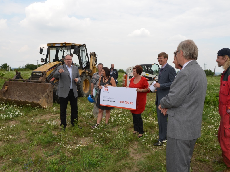 Při slavnostním zahájení stavby předal ředitel Nadace ČEZ Ondřej Šuch do rukou ředitelek líbeznických škol šek na 1.000.000 Kč. „Záměr vybudování školního hřiště v Líbeznících je skvělý v tom, že obec nečeká jen s nataženou rukou, ale sama je velmi aktivní. Takový přístup podporujeme rádi,“ zdůraznil Ondřej Šuch. „Oranžové hřiště“ bude v dopoledních hodinách sloužit dětem mateřské školy a žákům základní školy v odpoledních hodinách potom široké veřejnosti.