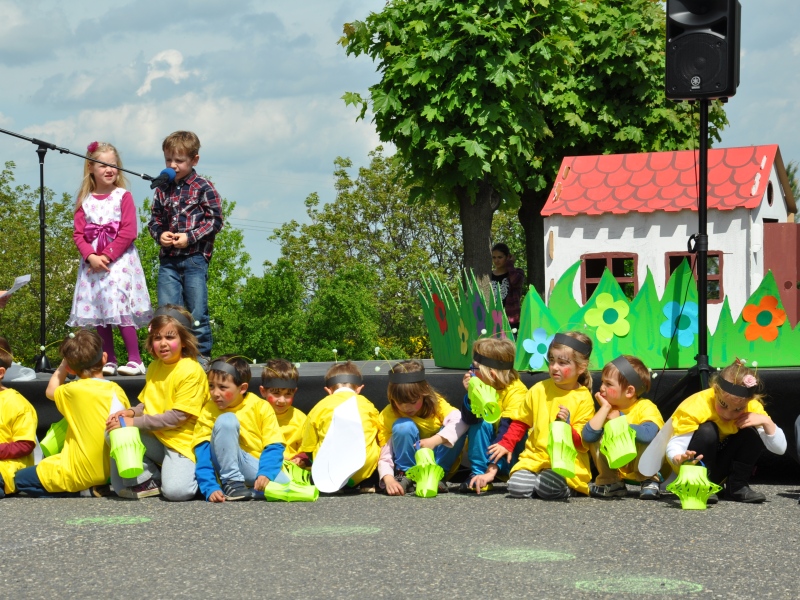 Bylo krásné slunečného počasí, přišlo mnoho diváků, pro které byl připraven bohatý dvouhodinový kulturní program i skvělé občerstvení. Maminky jistě potěšilo, že každá dostala ke Dni matek krásnou růži. Po úvodním přivítání předal starosta Martin Kupka květiny i ředitelkám školy a školky.