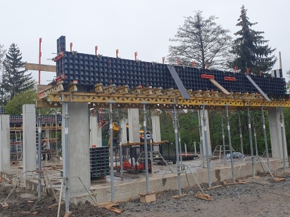 Na stavbě zázemí v Areálu zdraví probíhá příprava na betonáž stropu zázemí a portálu podia, která proběhne v tomto týdnu.