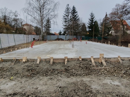 Stavba zázemí pro Areál zdraví pokračuje podle harmonogramu. Včera proběhla betonáž základové desky.